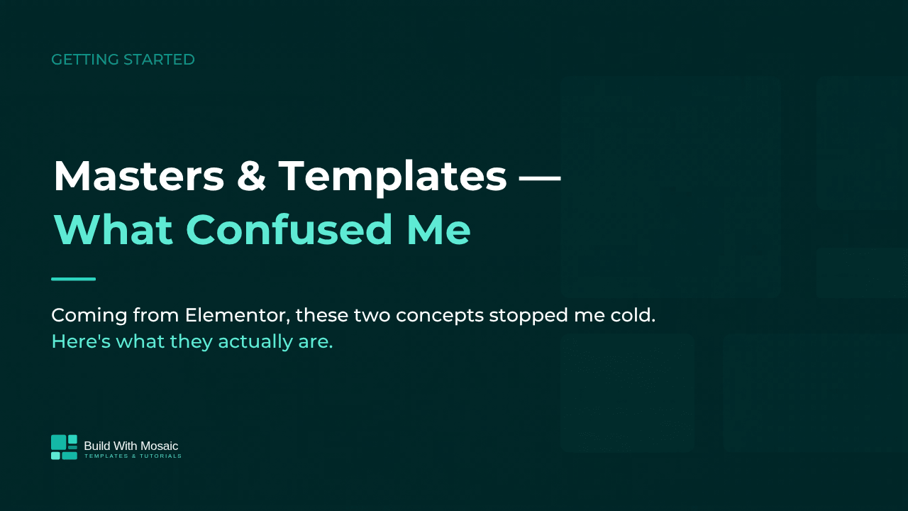 I’ve been building with Elementor and JetEngine for years. When I started learning Mosaic Builder, I expected a learning curve — but I didn’t expect to be genuinely confused by something as fundamental as Masters and Templates.