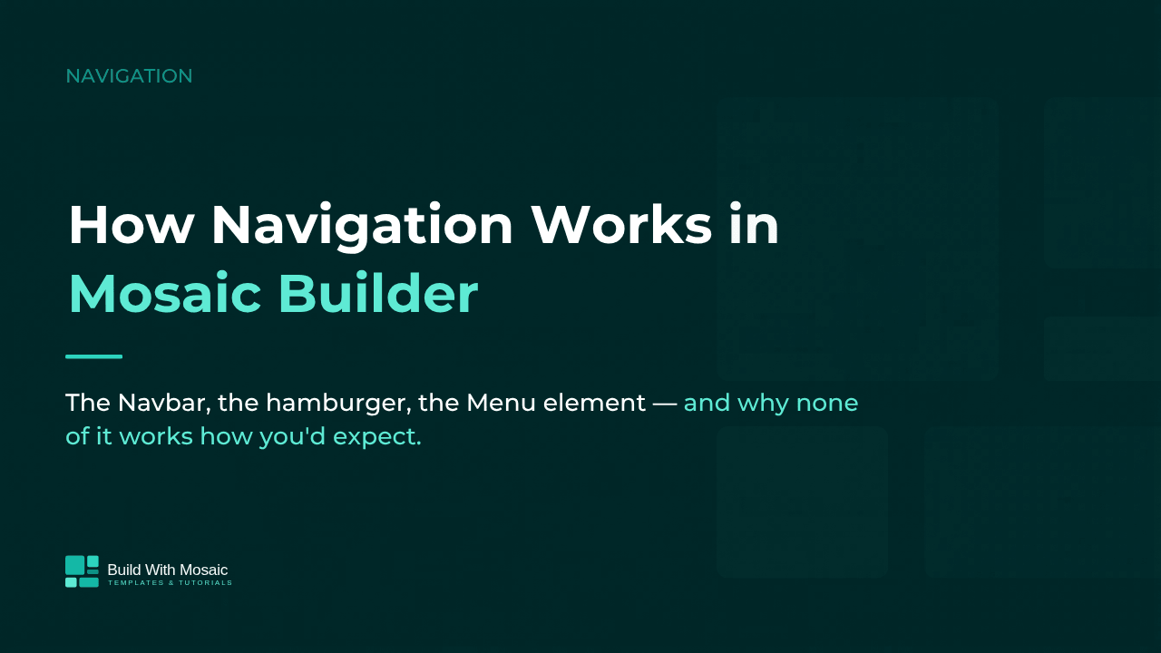 When I started building my first Master in Mosaic Builder, I assumed adding a navigation menu would be straightforward. Drop a menu element, connect it to my WordPress menu, done.